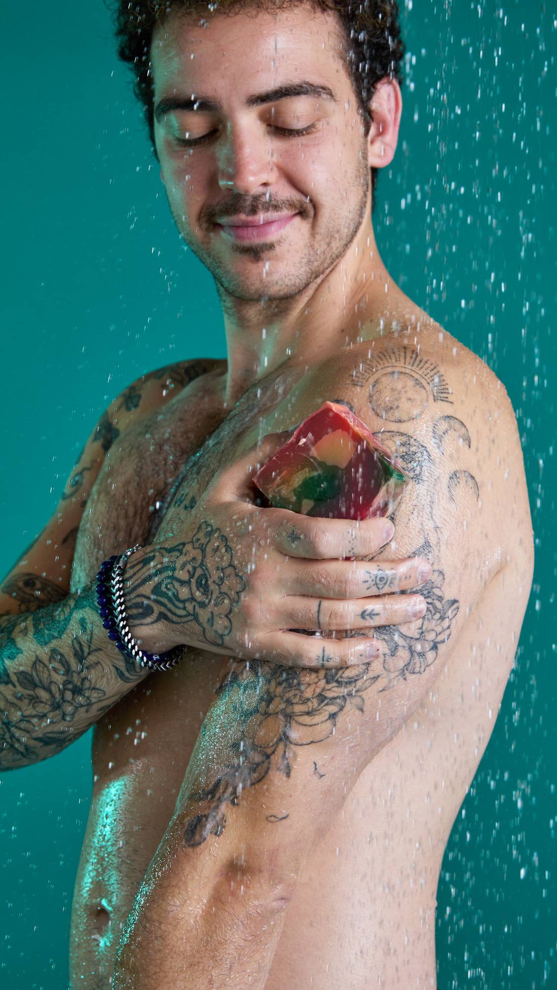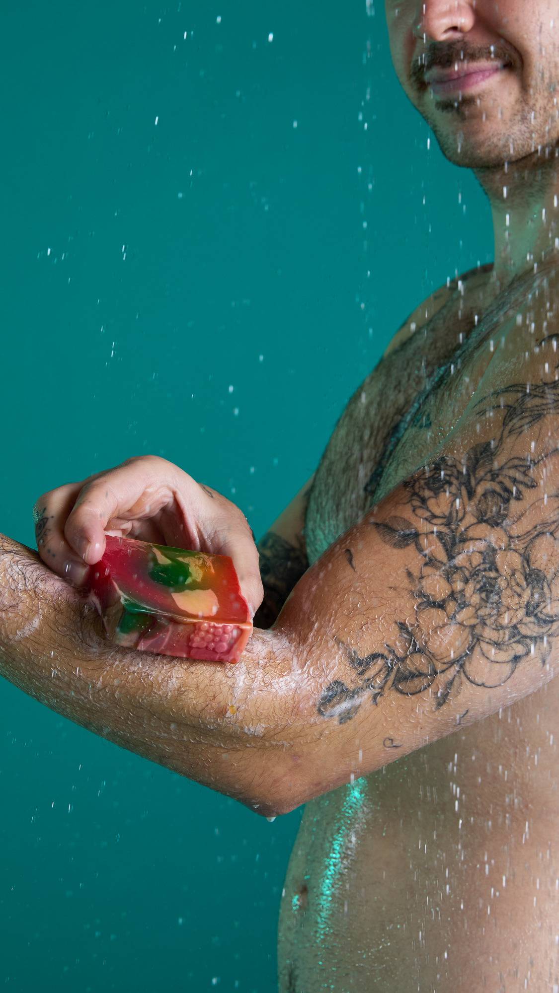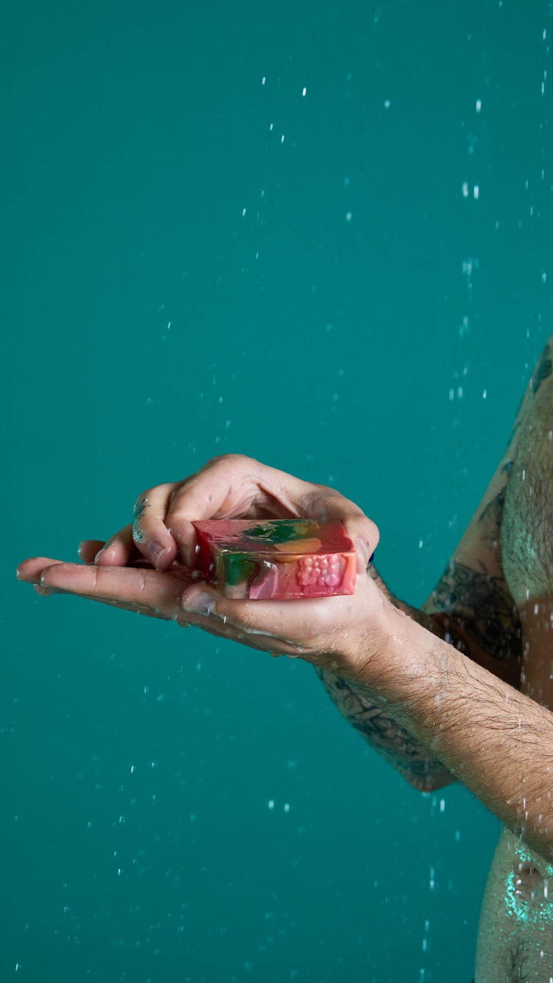 – Our proper soap is proper lovely and made the traditional way by saponification. We mix it by hand, adding in beautiful ingredients for their effects, pour it hot and let it cure before it takes pride of place by your sink. This coconut and rapeseed soap base gives a nice firm bar with fluffy bubbles — perfect for soap squidgers.